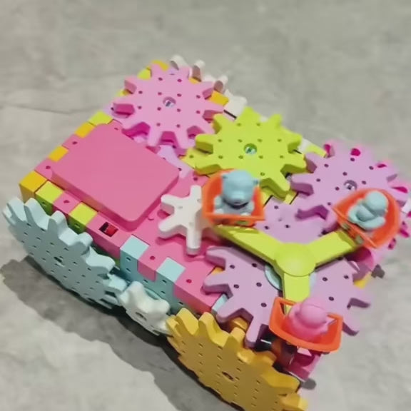חלקי המשחק כוללים מנוע חשמלי הפועל על סוללת AA אחת, בלוקים, גלגלי שיניים, דמויות, קרוסלות, נדנדות, מדבקות צבעוניות.