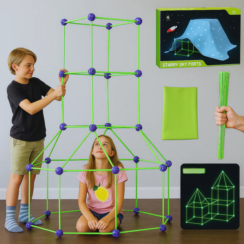 ערכת בנייה חכמה שמאפשרת לילדים לבנות מבצרים, טירות, אוהלים ובתים קטנים – יציבים, מרשימים ובטוחים למשחק.